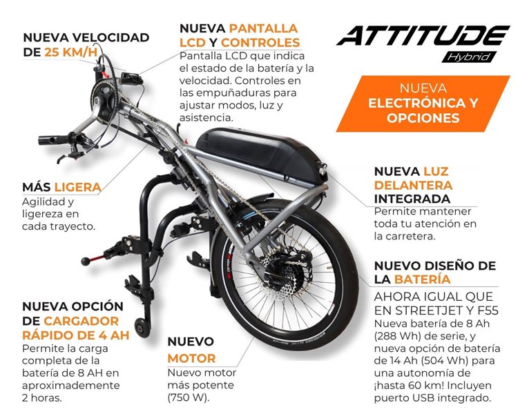 La handbike Attitude Hybrid estrena nueva electrónica y opciones: ahora es más ligera, más sofisticada y ofrece mayor autonomía.