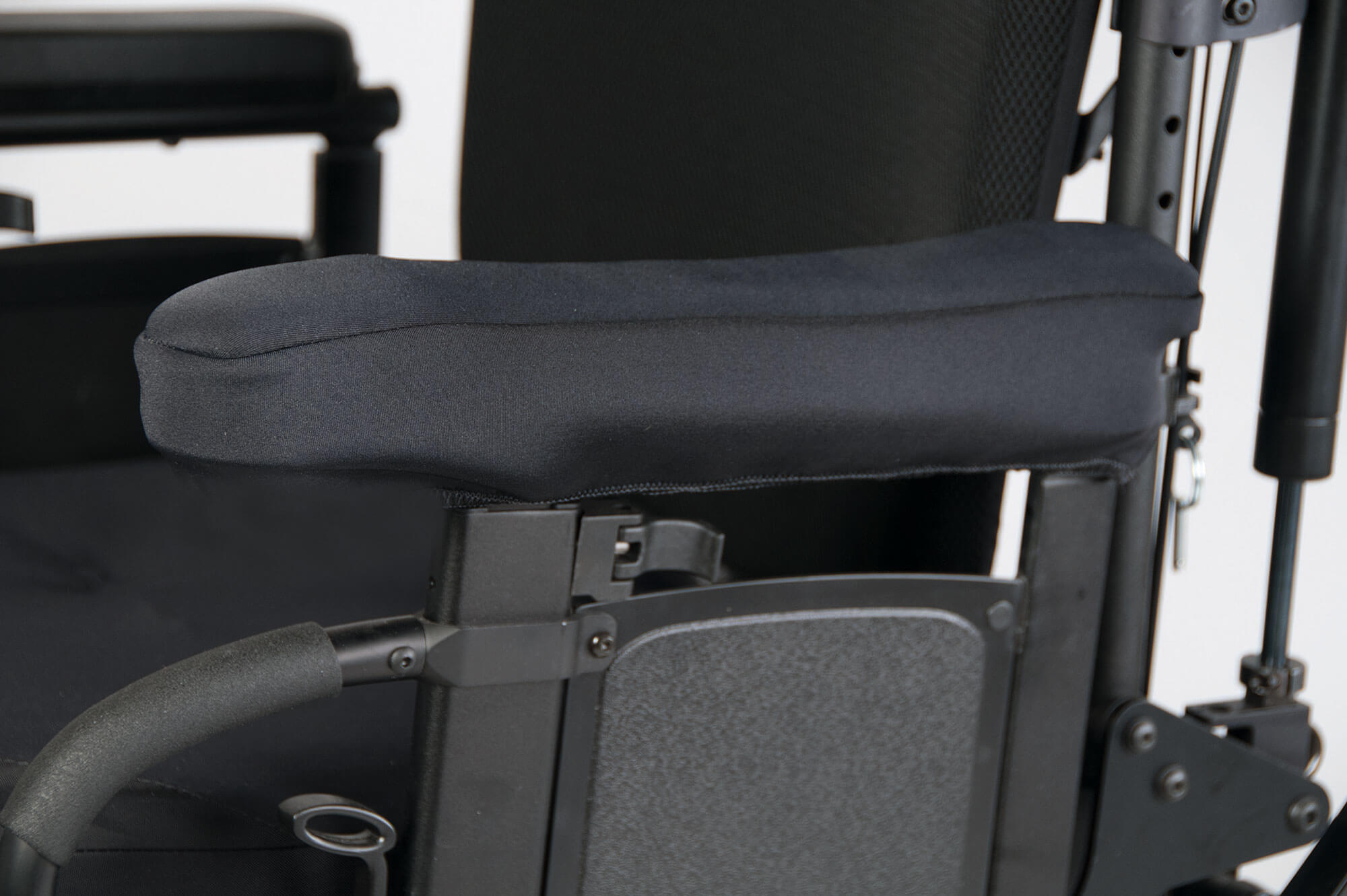 Su diseño contorneado y almohadillado extra garantiza el confort y la alineación de la extremidad superior. Disponible con anclaje fijo y/o abatible para colocarlo sobre el reposabrazos de la silla de ruedas.