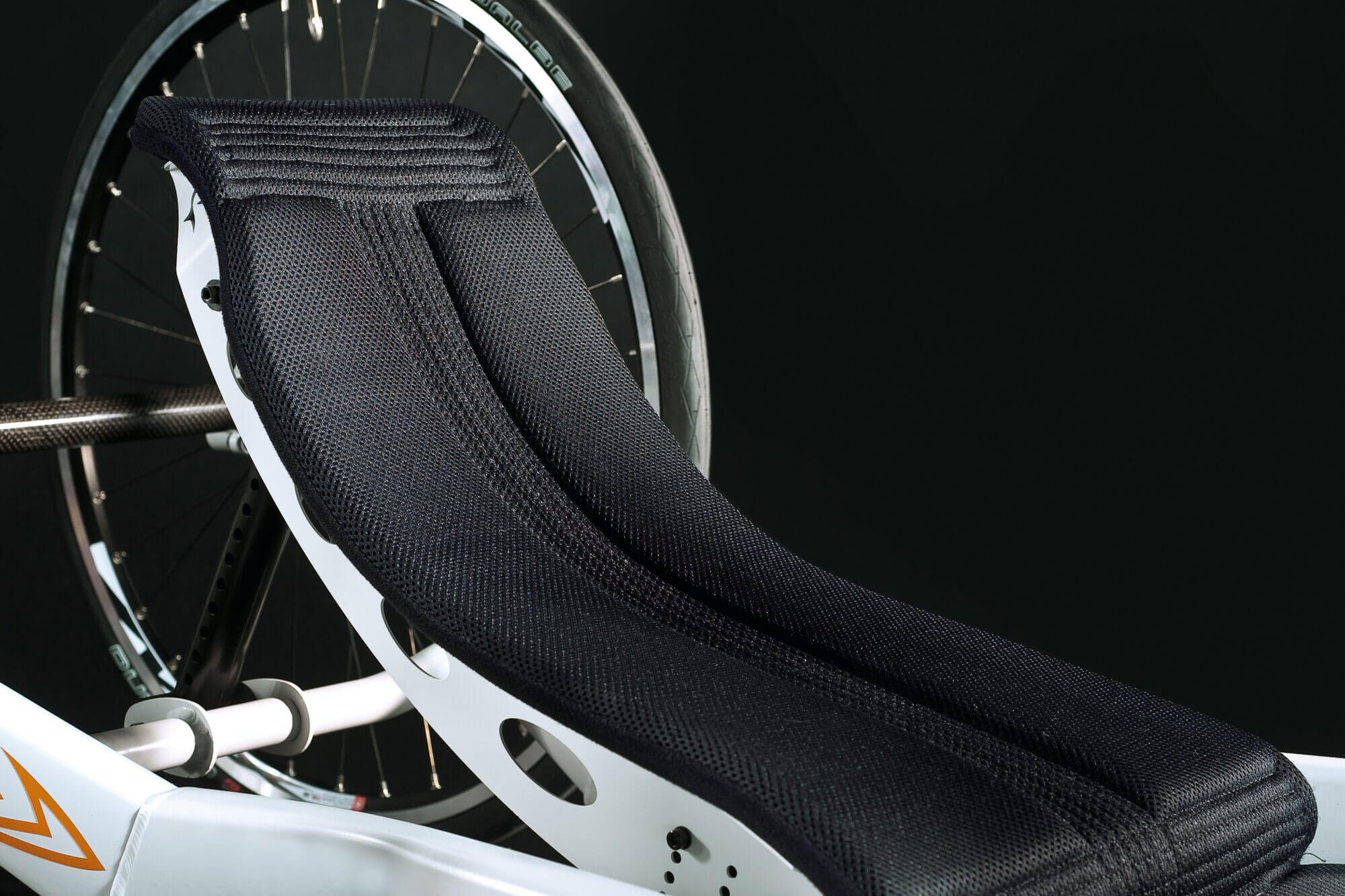 La unión entre la estructura y la horquilla es realmente robusta. Así se consigue una importante reducción de la flexibilidad, mejorando la eficacia en la propulsión y el rendimiento general de la handbike.